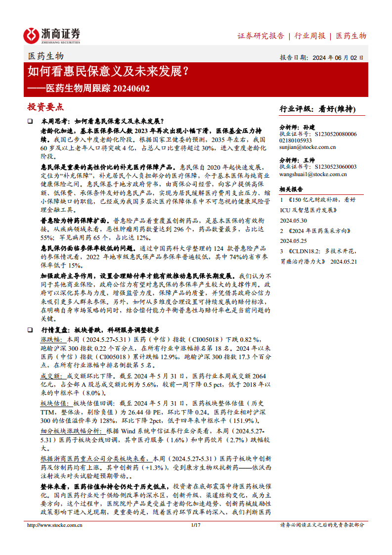 医药生物周跟踪20240602:如何看惠民保意义及未来发展?