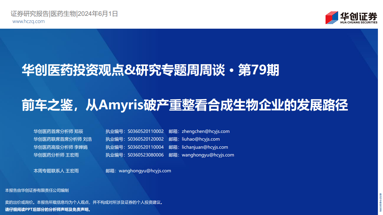 华创医药投资观点、研究专题周周谈第79期:前车之鉴,从Amyris破产重整看合成生物企业的发展路径
