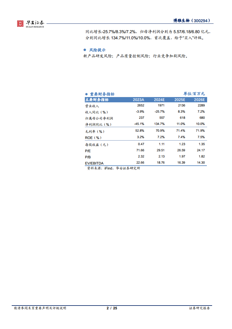 综合考虑公司战略转型、核心业务增长、研发创新以及华润赋能带来的积极影响,首次覆盖给予博雅生物“买入”评级。