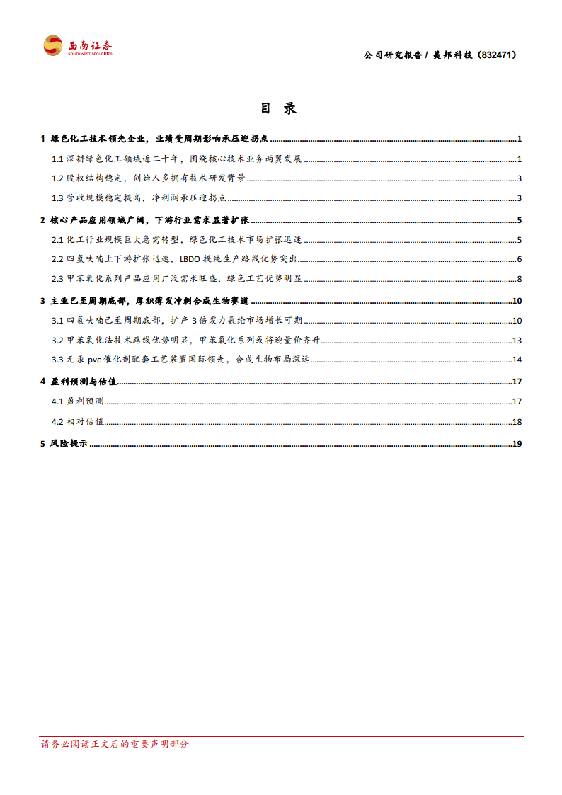 1 绿色化工技术领先企业,业绩受周期影响承压迎拐点