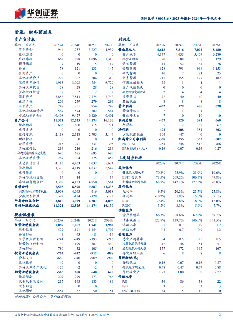 国际医学(000516):2023年报和2024年一季报点评:经营迈上新台阶,全生命周期医疗健康平台初步成型