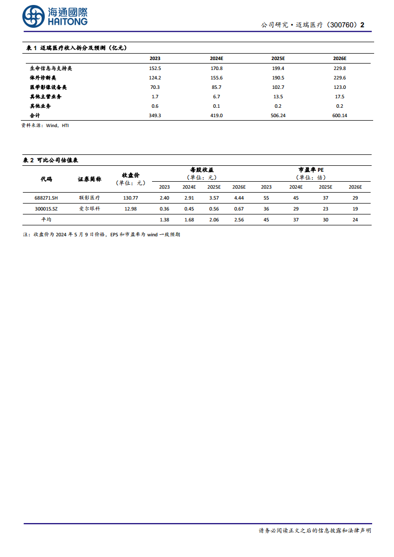 迈瑞医疗在2023年及2024年第一季度均实现了显著的业绩增长。