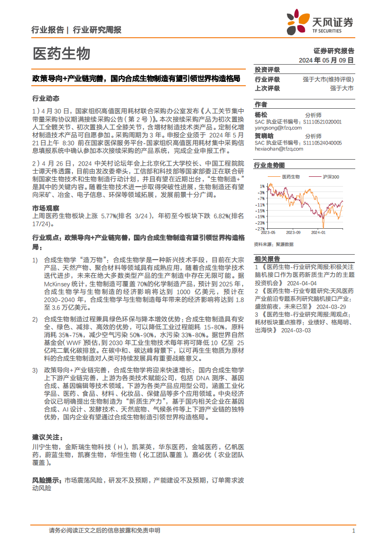 政策导向+产业链完善,国内合成生物制造有望引领世界构造格局