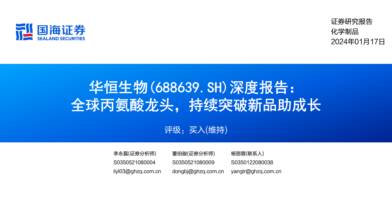 华恒生物(688639):深度报告:全球丙氨酸龙头,持续突破新品助成长