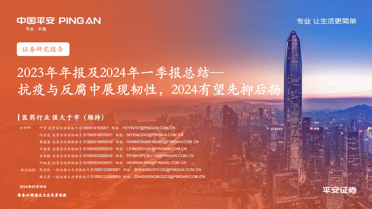 医药行业2023年年报及2024年一季报总结:抗疫与反腐中展现韧性,2024有望先抑后扬