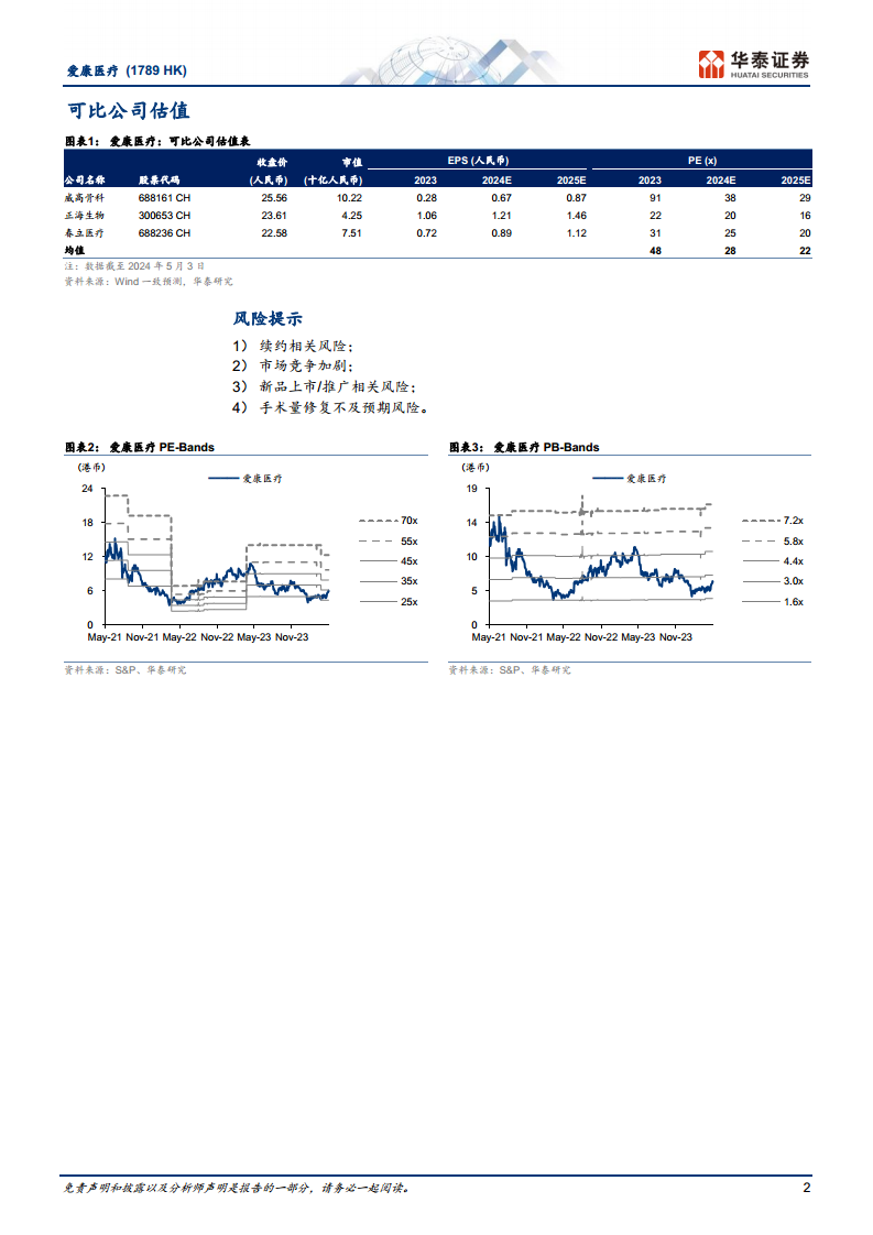爱康医疗凭借其差异化的竞争优势,膝关节产品在续采中报量提升显著,有望持续扩张市场份额。同时,髋关节产品在价格体系理顺后,预计将实现快速放量。除了关节业务,公司在创伤和脊柱领域的业务也呈现稳健增长态势,特别是3D打印脊柱产品的快速起量,为公司整体业绩复苏提供了额外动力。华泰研究预计爱康医疗2024年收入和归母净利润将分别实现30%以上和40%以上的同比增长(不考虑续约影响),并维持“买入”评级,目标价8.35港币,充分体现了市场对其未来盈利能力和增长潜力的积极预期。