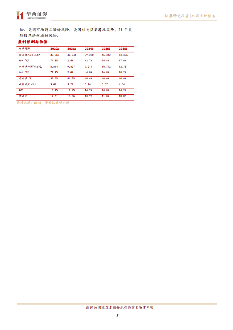 根据更新的盈利预测,公司2024年营业收入预计同比下降2.7%,归母净利润同比下降4.0%。但2025年和2026年营收和归母净利润预计将恢复两位数增长。