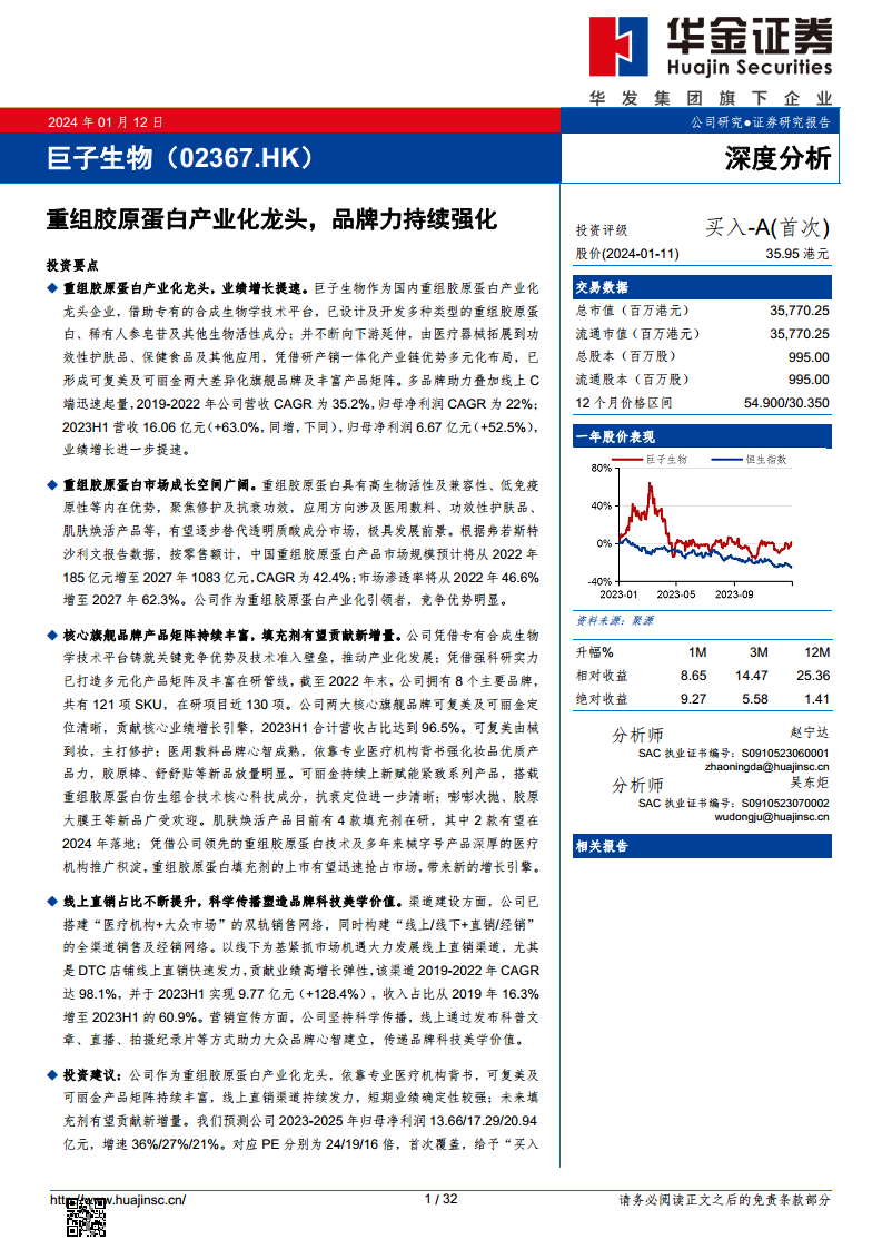 巨子生物(02367):重组胶原蛋白产业化龙头,品牌力持续强化