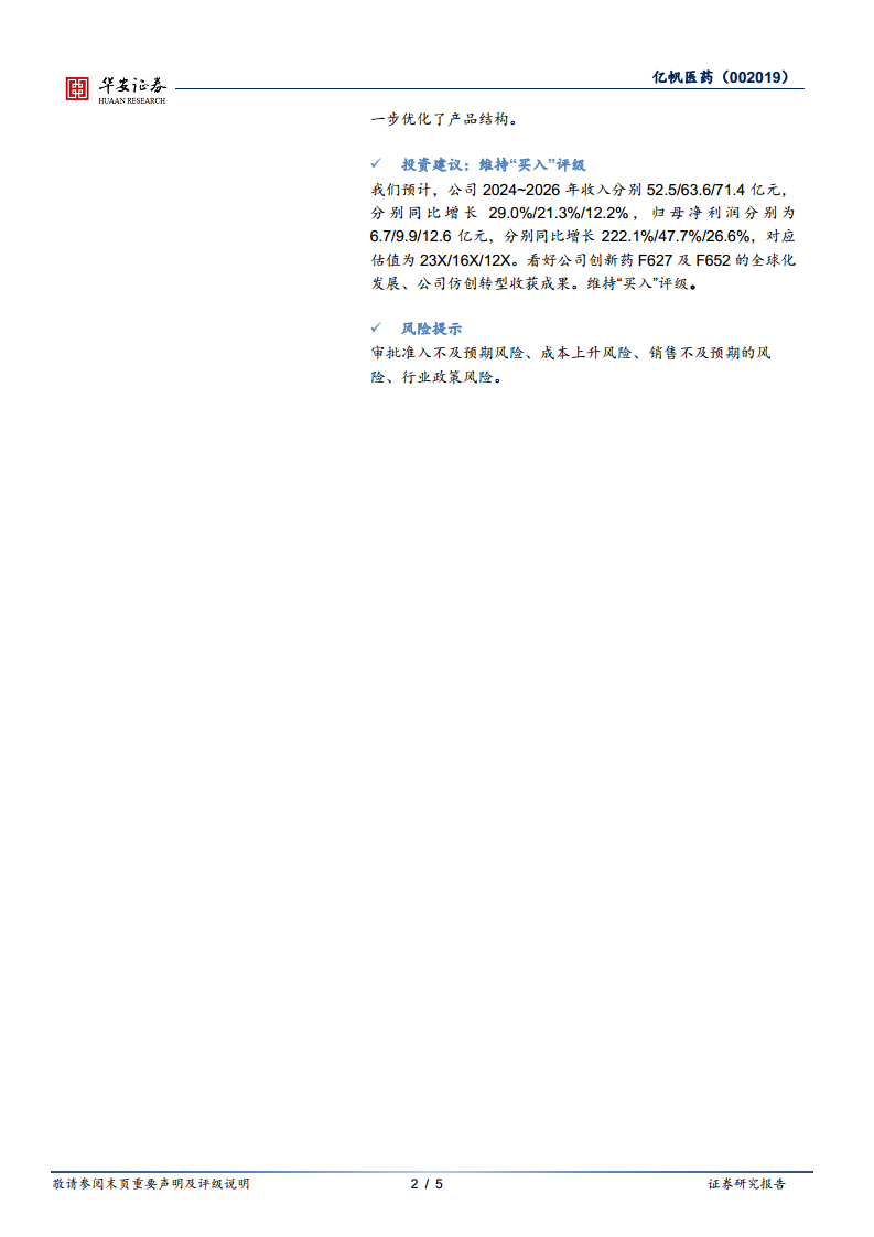 亿帆医药在2024年第一季度展现出强劲的业绩复苏和增长势头,这主要得益于前期减值准备的彻底出清以及公司持续推进的降本增效策略。财务数据显示,公司营收和净利润均实现大幅增长,经营性现金流表现尤为突出。在创新药领域,F627(亿立舒®/Ryzneuta®)成功实现中美欧三地获批上市,标志着公司创新出海战略的重大突破和成功兑现。同时,F652作为全球首创IL-22抗体,其临床试验进展顺利,有望成为公司下一个重磅创新药物。此外,公司通过代理新产品和多个首仿产品的上市,进一步丰富了产品管线,巩固了市场竞争力。综合来看,亿帆医药正处于创新转型收获期,未来业绩增长潜力巨大,分析师维持“买入”评级,并对其创新药的全球化发展和仿创转型成果持乐观态度。投资者需关注审批准入、成本上升、销售不及预期及行业政策等潜在风险。