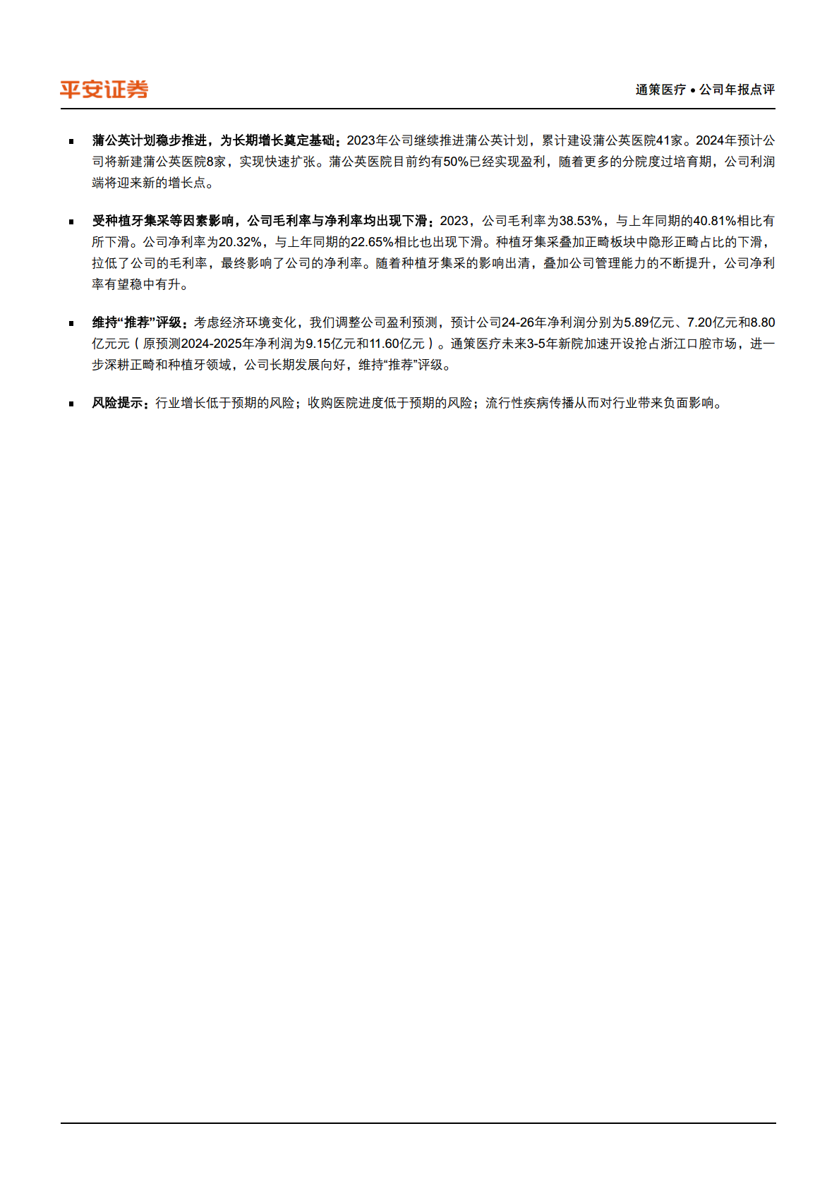报告同时提示了潜在风险:包括行业增长低于预期的风险、收购医院进度低于预期的风险,以及流行性疾病传播可能对行业带来负面影响的风险。这些风险因素需要投资者密切关注。