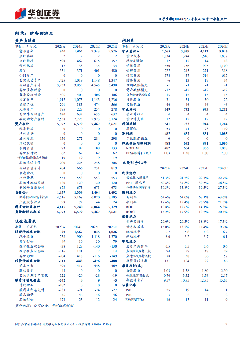 盈利预测与估值:
