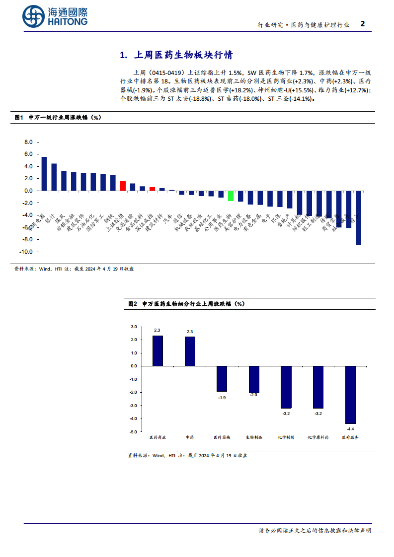 尽管上周医药生物板块整体表现弱于大盘,但细分领域如医药商业、中药表现突出。海通医药的月度组合也显著跑赢医药指数,显示出在市场波动中,精选个股和关注特定主题(如国企改革)的投资策略有效性。报告强调了在当前市场风险偏好较低的环境下,稳健且具备分红潜力的国企标的更受青睐。