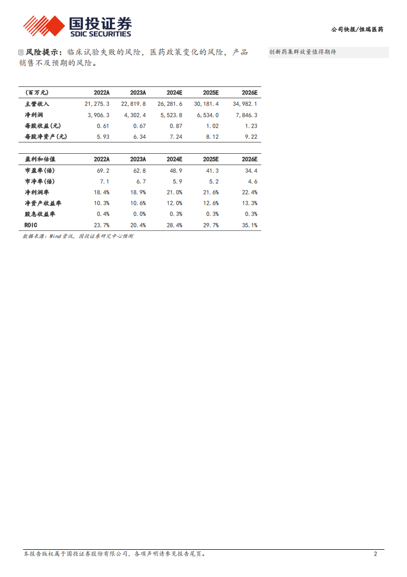 基于公司当前的业绩表现和研发管线进展,分析师给出了积极的投资建议,并提示了相关风险。
