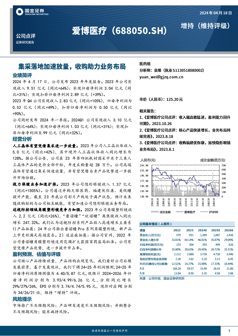 爱博医疗(688050):集采落地加速放量,收购助力业务布局