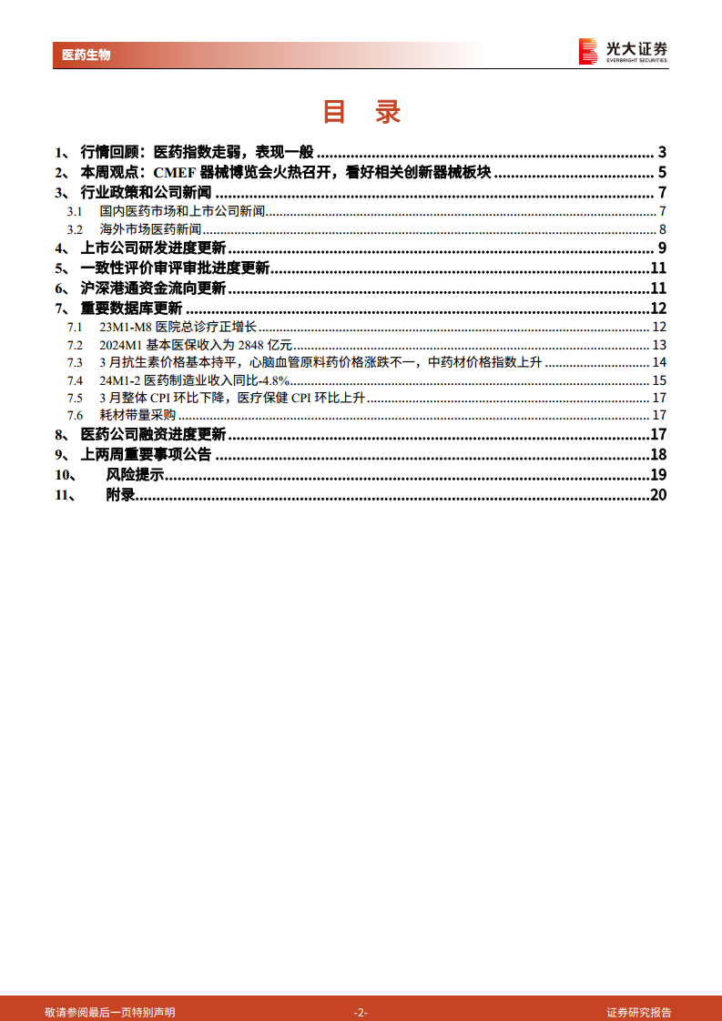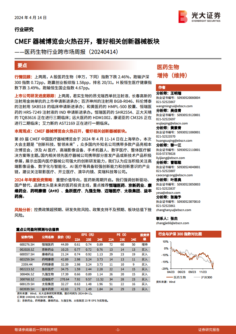 医药生物行业跨市场周报(20240414):CMEF器械博览会火热召开,看好相关创新器械板块