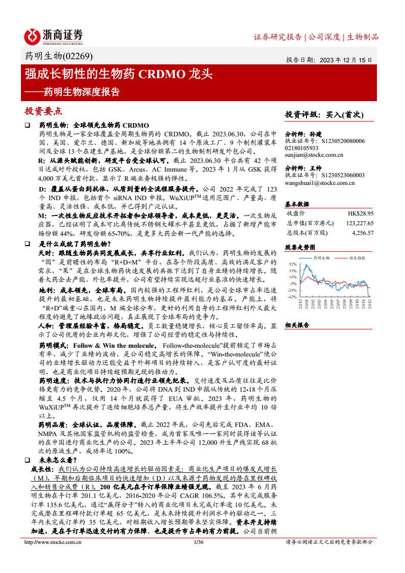 药明生物作为全球领先的生物药合同研究、开发与生产(CRDMO)服务提供商,凭借其独特的端到端一体化平台、前瞻性的全球化布局、显著的成本优势以及“跟随分子”与“赢得分子”双轮驱动的商业模式,在全球生物药行业中展现出强大的成长韧性。尽管短期内面临行业景气度下滑的挑战,公司通过充沛的在手订单、持续的产能扩张、精益化运营管理以及对生物药“大单品”时代和生物类似药机遇的精准把握,有望实现业绩的持续稳健增长,并进一步巩固其在全球生物药CDMO领域的龙头地位。