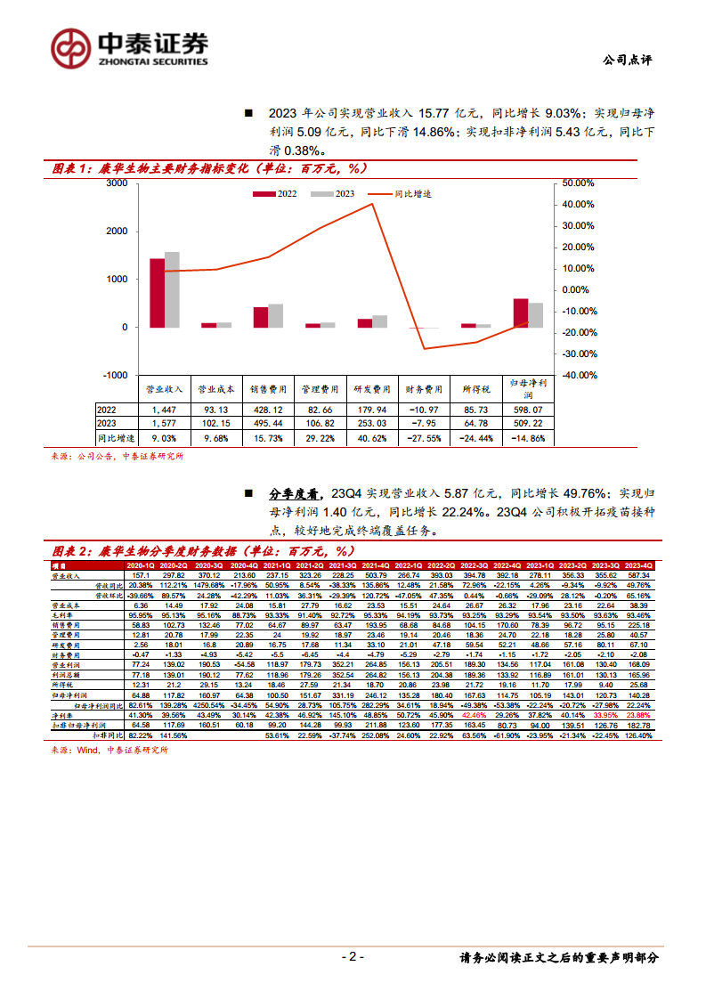 康华生物在2023年克服多重不利因素,实现了营业收入的稳健增长,并在第四季度展现出强劲的业绩反弹。公司持续加大研发投入,推动产品创新,为未来发展奠定基础。