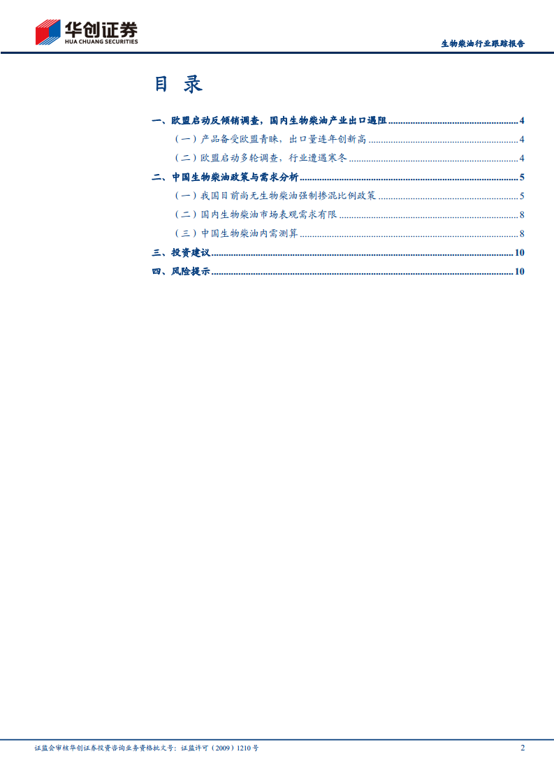 基于对生物柴油行业未来内需增长潜力的判断,报告提出了具体的投资建议: