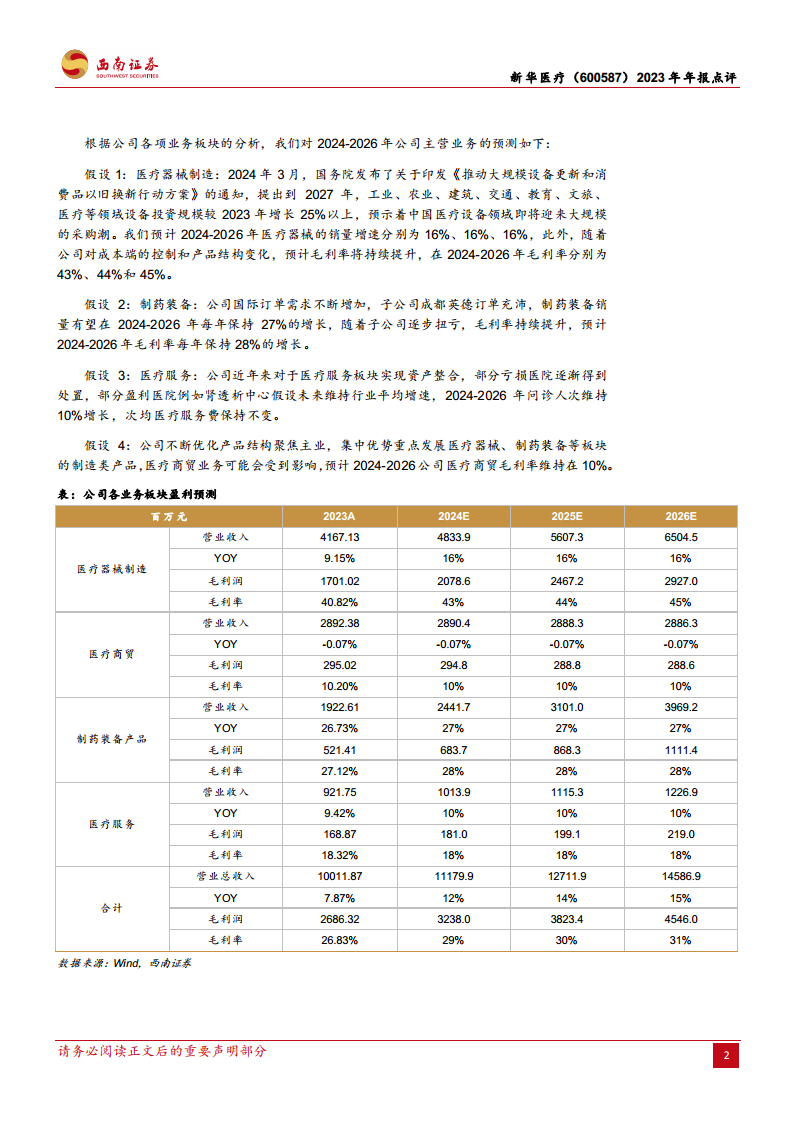 新华医疗在2023年实现了营业收入和归母净利润的显著增长,主要得益于公司战略性聚焦医疗器械制造和制药装备两大核心主业,并通过持续优化产品结构,提升了高毛利产品的收入占比。这一战略转型有效夯实了公司的市场竞争力,推动了整体盈利能力的提升。