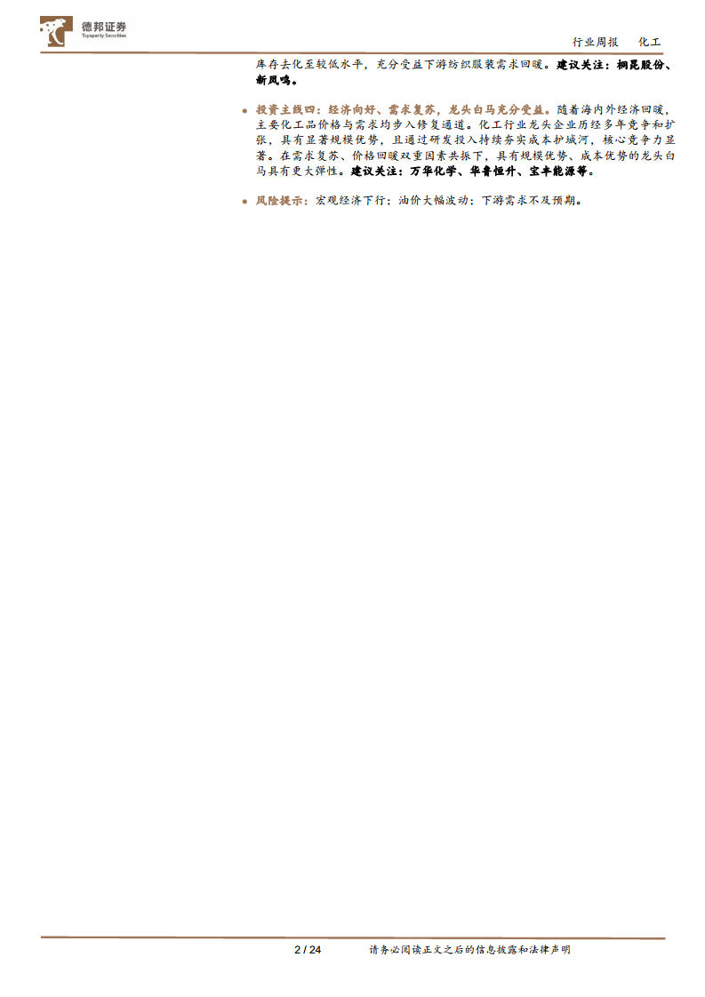 本报告提示投资者关注宏观经济下行、油价大幅波动以及下游需求不及预期等风险。