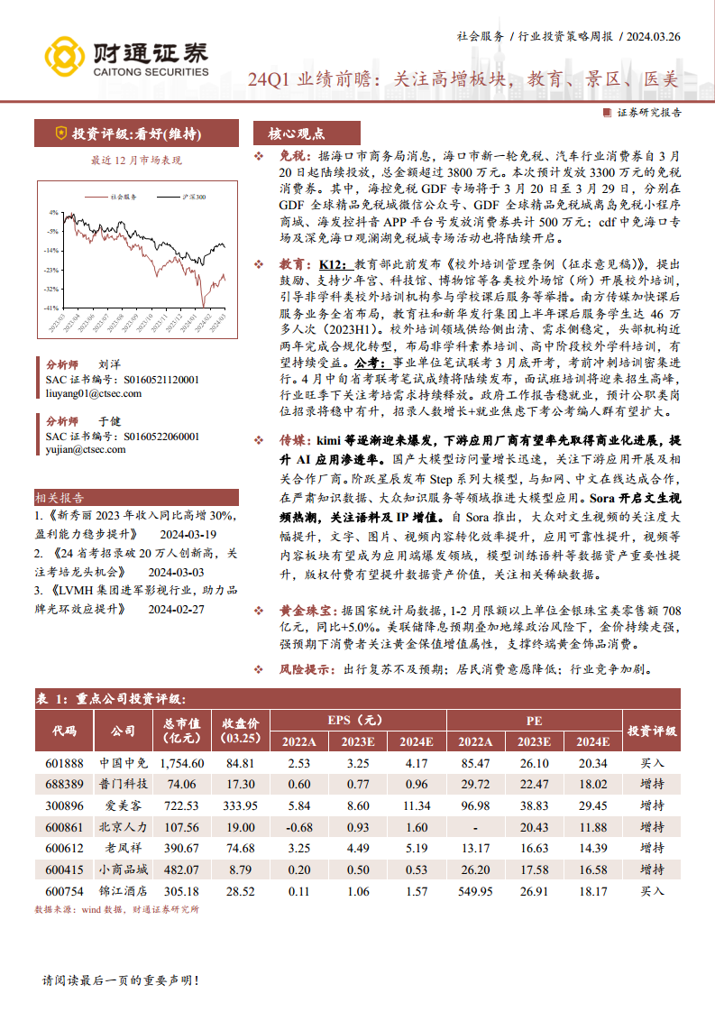 24Q1业绩前瞻:关注高增板块,教育、景区、医美