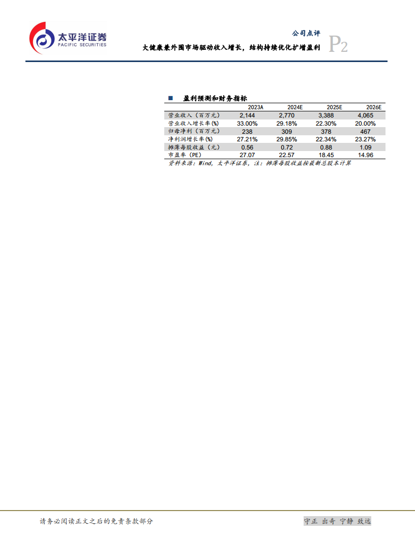 大健康兼外围市场驱动收入增长,结构持续优化扩增盈利