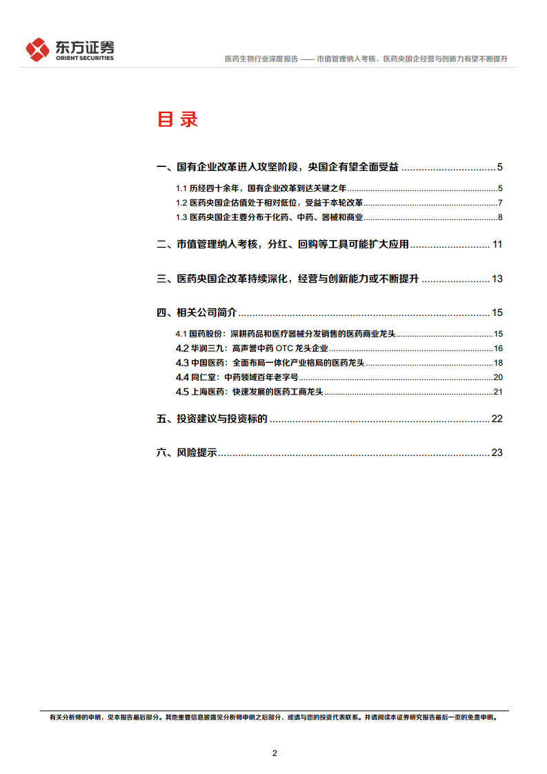 央国企改革专题研究:市值管理纳入考核,医药央国企经营与创新力有望不断提升