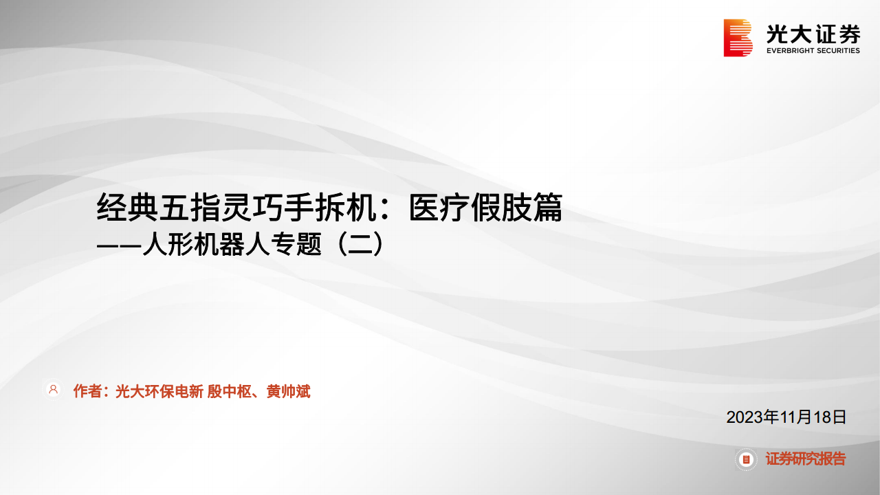 人形机器人专题(二):经典五指灵巧手拆机:医疗假肢篇