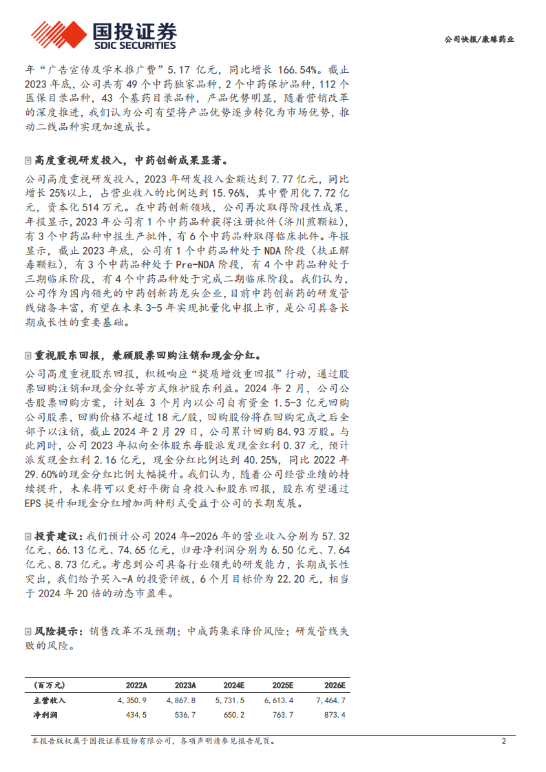 公司正积极推进营销改革,从传统模式向新型学术推广模式转变,以期解决非注射剂品种的销售困境并推动二线品种加速成长。尽管改革短期内可能带来阵痛,但长期来看有利于优化销售结构,将产品优势转化为市场优势。同时,公司持续加大研发投入,中药创新成果显著,丰富的研发管线为公司未来3-5年的批量化新药上市奠定了坚实基础,彰显了其作为中药创新药龙头的长期成长性。此外,公司通过股票回购注销和现金分红等方式积极回报股东,提升了股东回报水平,进一步增强了市场信心。