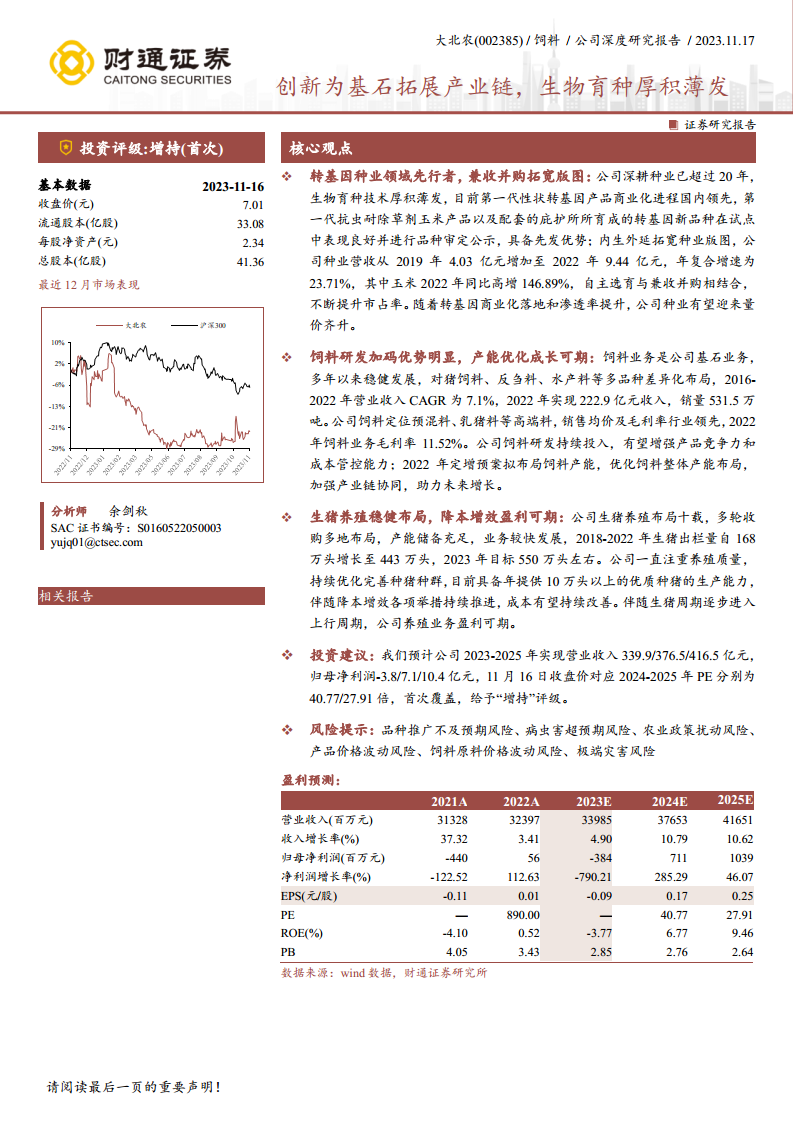 大北农(002385):创新为基石拓展产业链,生物育种厚积薄发