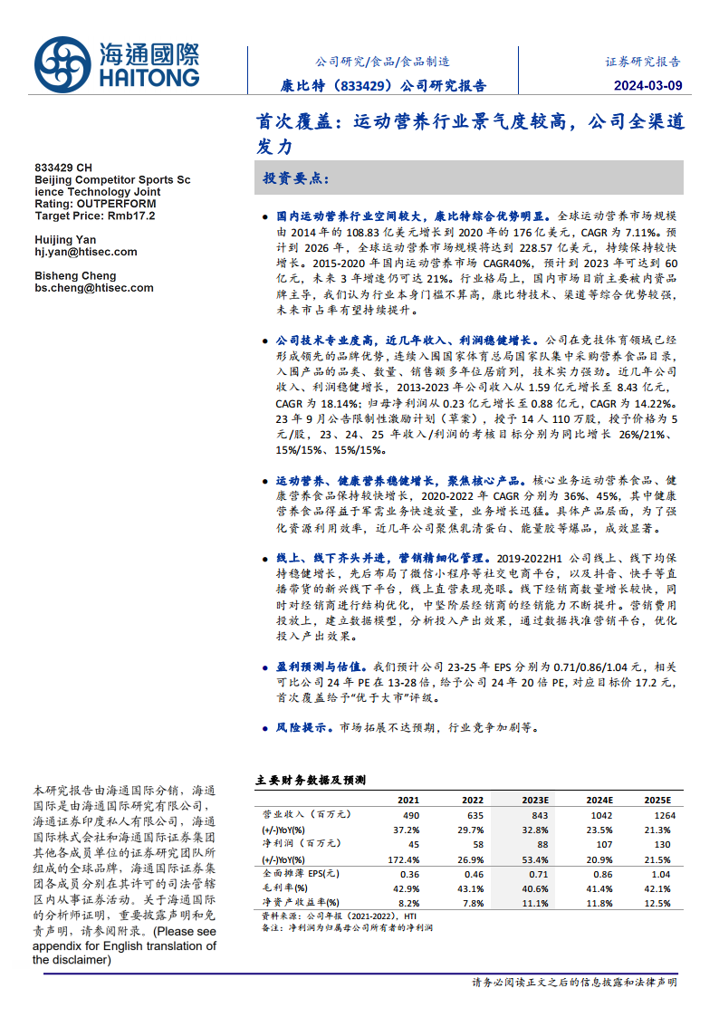 康比特(833429):首次覆盖:运动营养行业景气度较高,公司全渠道发力