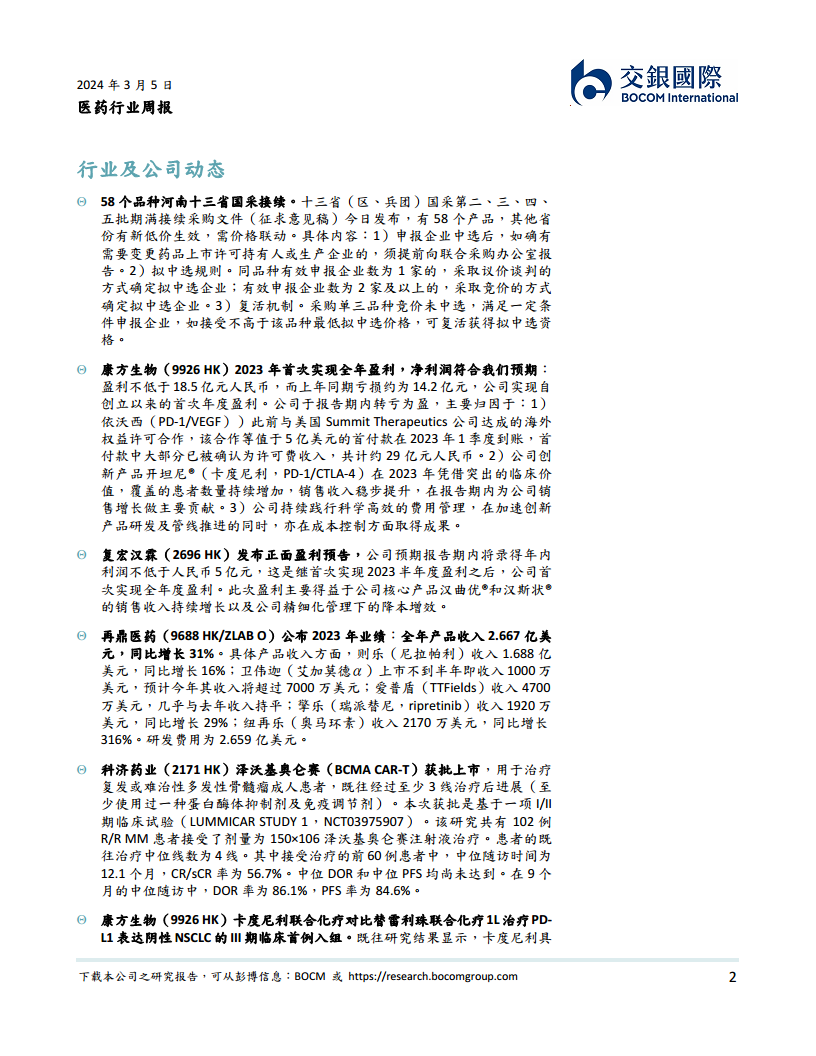 2023年,中国创新药市场展现出强劲的增长势头,以康方生物和复宏汉霖为代表的生物科技公司首次实现年度盈利,显著提振了市场对国产创新药研发和商业化前景的信心。这不仅反映了企业在产品管线、市场拓展和成本控制方面的成效,也预示着创新药行业正逐步迈向成熟的盈利阶段。同时,河北等省份出台的“互联网+”医疗服务医保支付政策,进一步规范了线上医疗服务,促进了医疗模式的创新与融合,为行业发展提供了明确的政策指引。