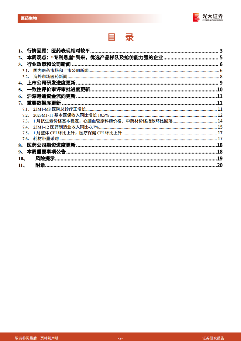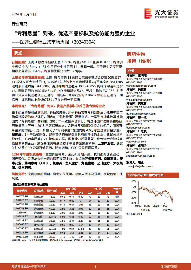 医药生物行业跨市场周报:“专利悬崖”到来,优选产品梯队及抢仿能力强的企业