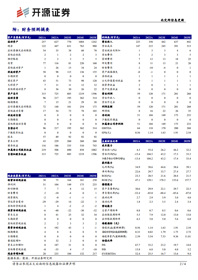 详细的财务预测包括资产负债表、利润表和现金流量表,以及成长能力、获利能力、偿债能力、营运能力和每股指标等主要财务比率。这些数据共同描绘了公司稳健的财务状况和积极的增长前景。例如,资产负债率预计将保持在较低水平,流动比率和速动比率均显示出良好的短期偿债能力。每股收益(EPS)预计将从2021年的0.56元增长至2025年的2.54元,P/E估值则呈现逐年下降趋势,从2023年的23.2倍降至2025年的14.8倍,显示出估值吸引力。