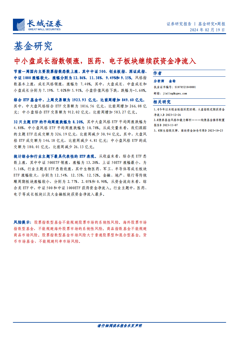 中小盘成长指数领涨,医药、电子板块继续获资金净流入