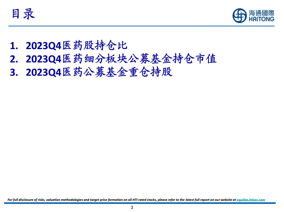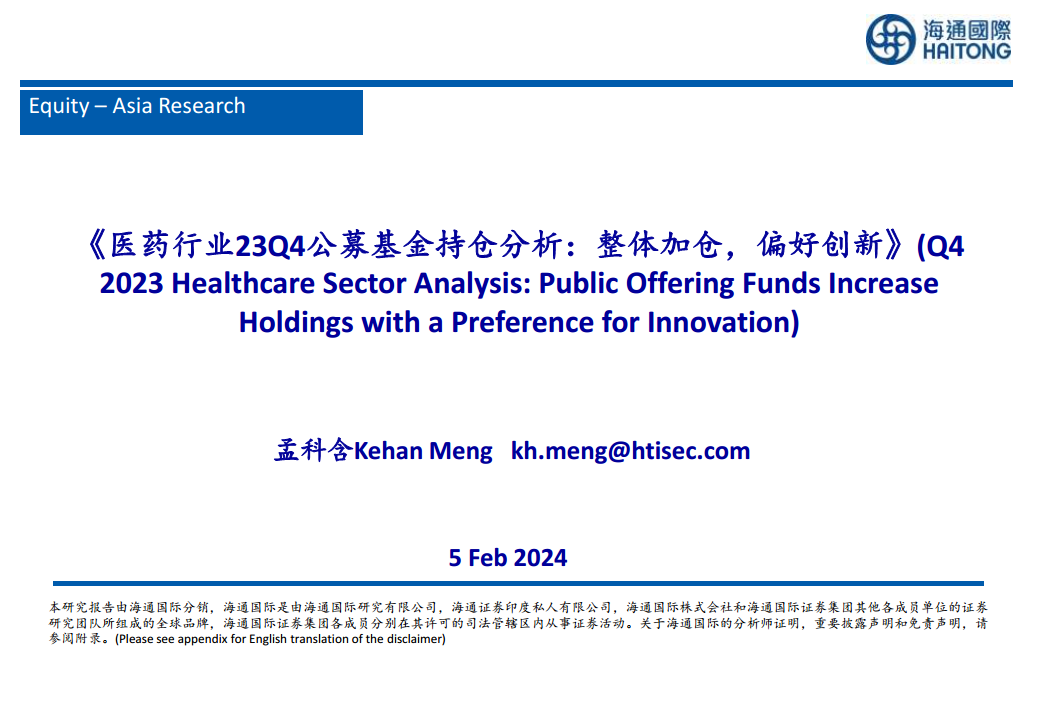 《医药行业23Q4公募基金持仓分析:整体加仓,偏好创新》
