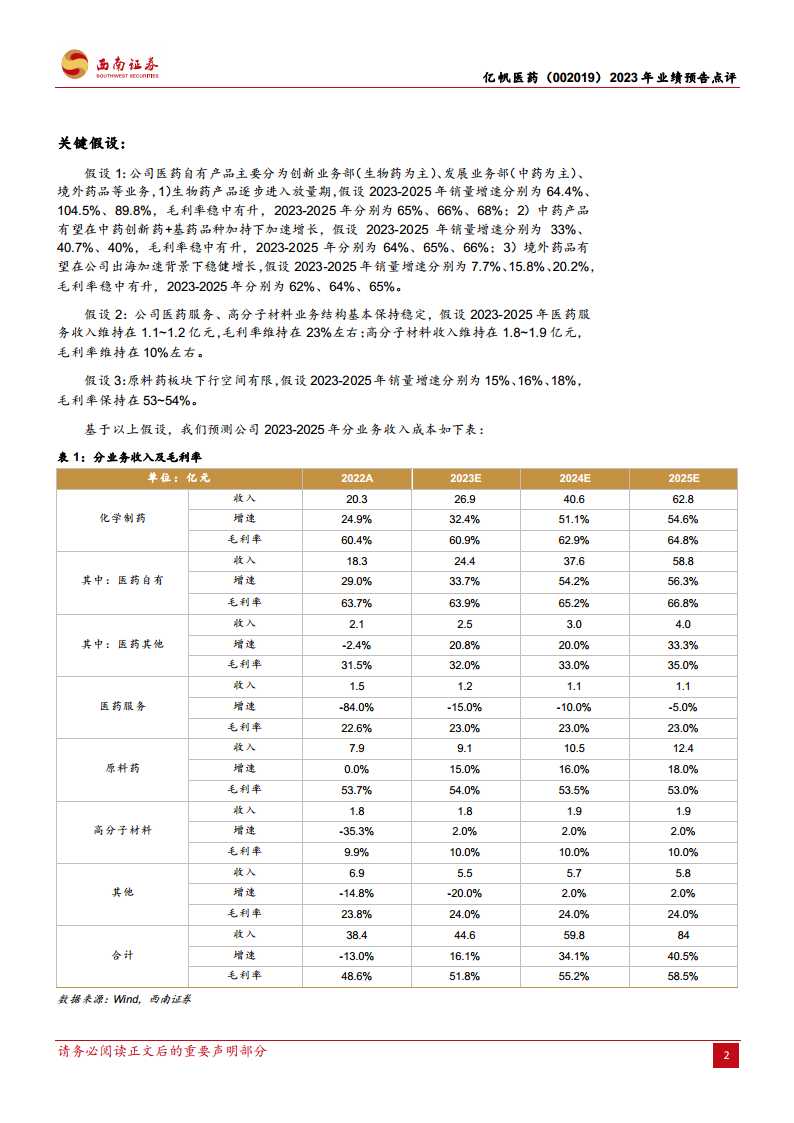根据上述假设,公司总收入预计从2022年的38.4亿元增长至2025年的84亿元,年复合增长率显著。其中,化学制药(特别是医药自有产品)将是主要增长引擎,其收入预计从2022年的18.3亿元增长至2025年的58.8亿元,毛利率也将持续提升。整体毛利率预计从2022年的48.6%提升至2025年的58.5%。
