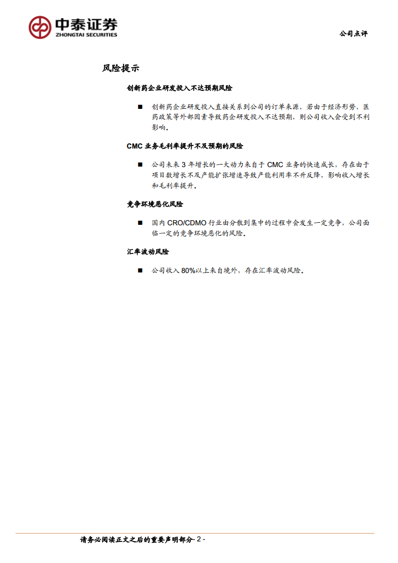 公司凭借其一体化、多疗法服务平台,在实验室服务、小分子CDMO、临床研究服务以及大分子及细胞基因治疗等核心业务领域展现出显著的竞争优势和增长潜力,尤其随着小分子CDMO产能的逐步释放和各业务板块的整合完善,有望持续推动业绩高速增长。