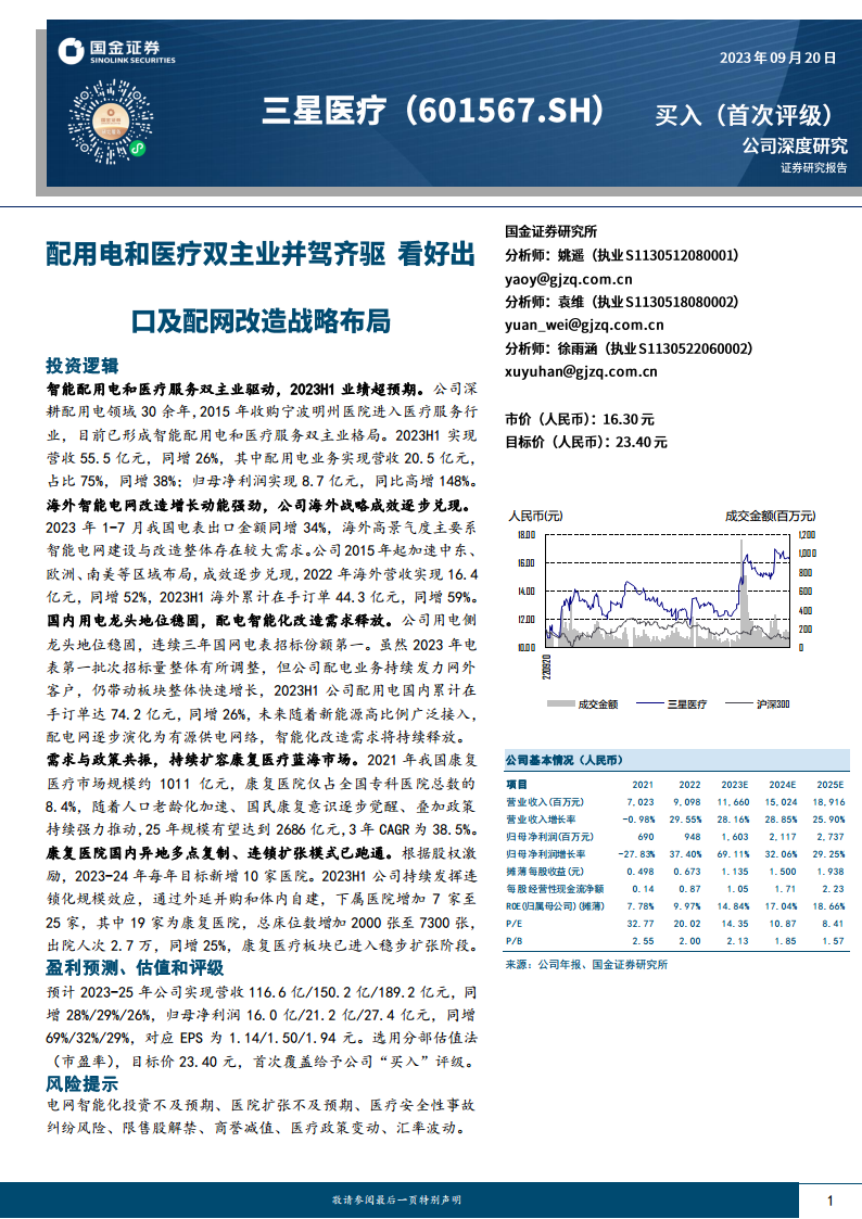 三星医疗(601567)深度:配用电和医疗双主业并驾齐驱看好出口及配网改造战略布局