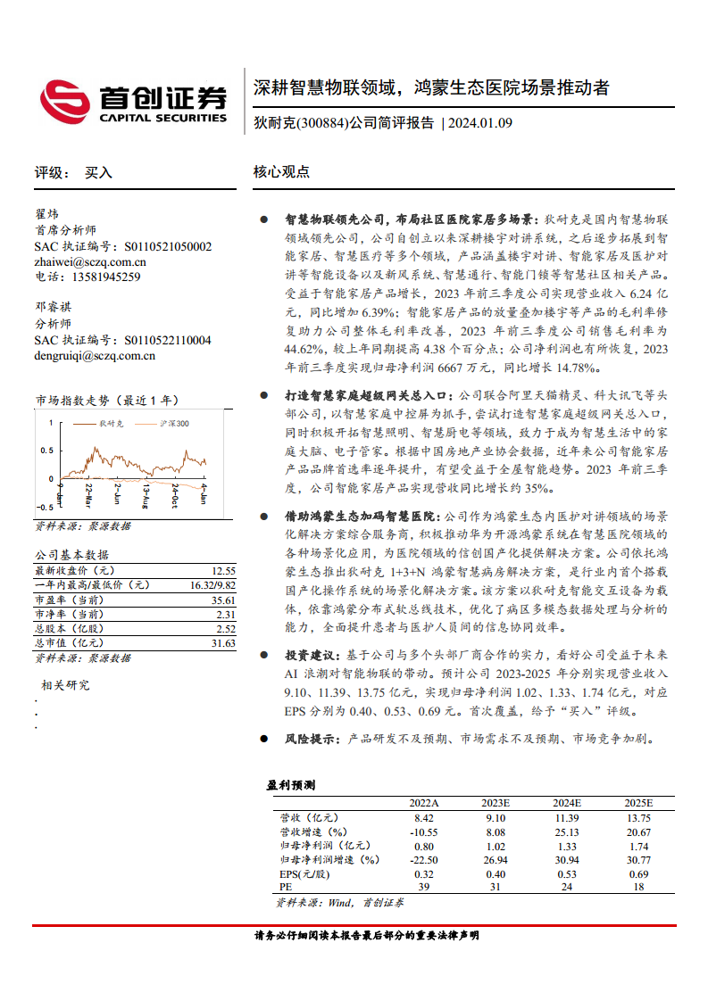狄耐克凭借其在智慧物联领域的深厚积累和前瞻性布局,已成为智能家居和智慧医疗市场的关键参与者。公司通过与阿里、科大讯飞等巨头的合作,致力于构建智慧家庭超级网关,并在鸿蒙生态下率先推出智慧病房国产化解决方案,展现出强大的创新能力和市场竞争力。2023年前三季度,公司财务表现稳健,营收和净利润均实现增长,毛利率显著改善。展望未来,狄耐克有望受益于AI和国产化趋势,实现持续增长,因此获得“买入”评级,但投资者仍需关注相关市场及研发风险。