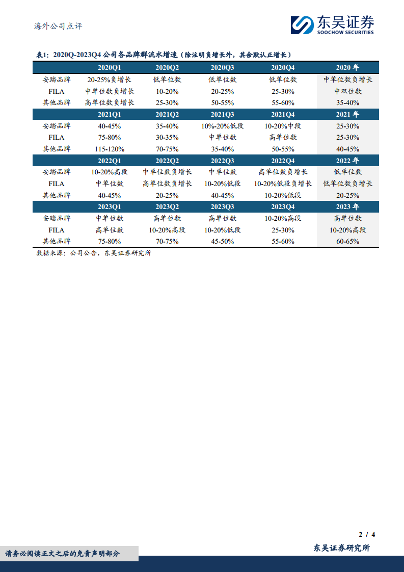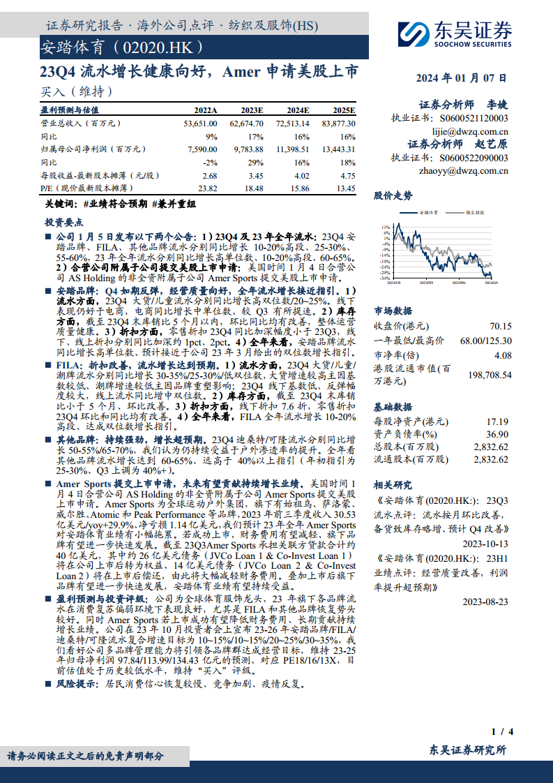 安踏体育(02020):23Q4流水增长健康向好,Amer申请美股上市
