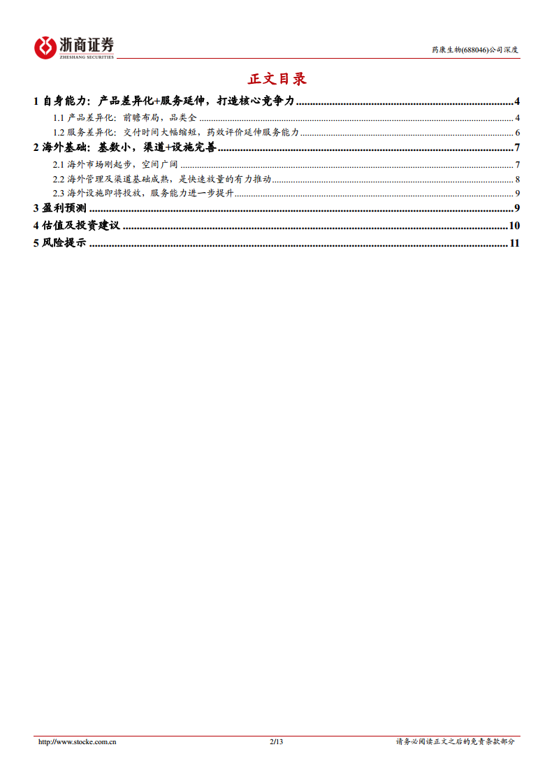 药康生物作为基因编辑模式动物领域的领军企业,凭借其全球领先的产品品类、前瞻性的创新模型(如“野化鼠”)以及高效的服务模式(如“斑点鼠”计划),构建了强大的核心竞争力。在海外市场,公司具备巨大的增长潜力,通过成熟的渠道基础、国际知名企业的认可、资深海外团队的引入以及即将投产的美国设施,其海外业务有望实现爆发式增长,成为公司未来业绩增长的核心驱动力。尽管面临海外市场拓展、产能利用率和创新药投融资等潜在风险,但公司目前的估值水平低于可比公司平均,结合其在“出海”和“创新”两大医药趋势中的战略定位,本报告维持“增持”评级,看好药康生物在2024年及未来的发展前景。