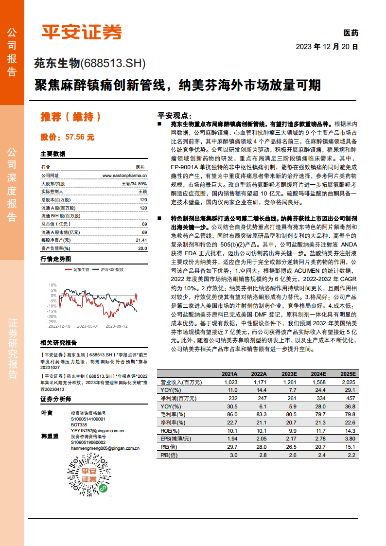 苑东生物(688513):聚焦麻醉镇痛创新管线,纳美芬海外市场放量可期