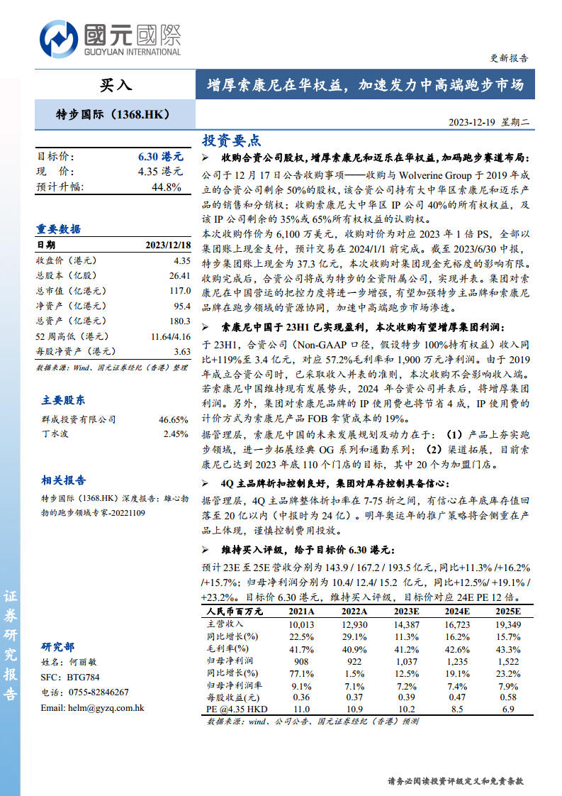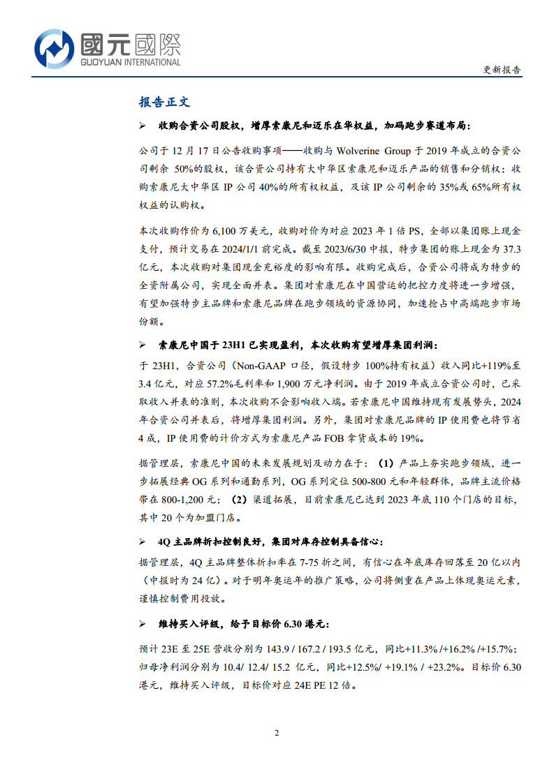 索康尼中国业务在2023年上半年已展现出强劲的盈利能力,实现收入同比119%的显著增长至3.4亿元人民币,并录得高达57.2%的毛利率和1,900万元的净利润,显示出其高端定位和高效运营。此次收购完成后,索康尼中国将全面并入特步国际的财务报表,预计将直接且显著增厚集团的整体利润,