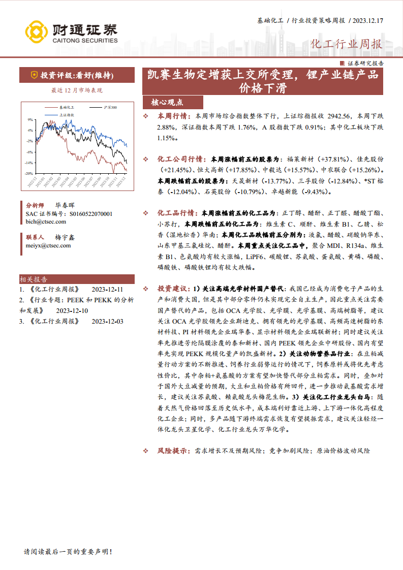 凯赛生物定增获上交所受理,锂产业链产品价格下滑