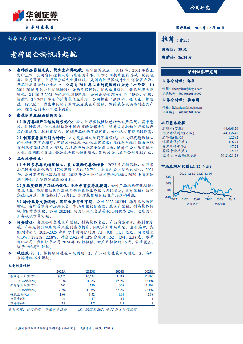 - 新华医疗成立于1943年,2002年上市,实际控制人为山东省国资委,是国内医疗器械行业中综合实力强、产品种类齐全的企业之一。