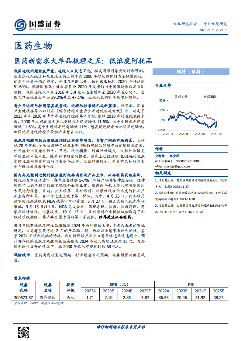 低浓度硫酸阿托品滴眼液在延缓青少年近视发展方面显示出显著优势,且副作用小,被认为是目前已知效果最佳的防控手段。随着国内研发的推进,该产品有望实现商业化,为市场带来革命性变化。兴齐眼药作为先行者,其低浓度阿托品滴眼液有望率先获批上市,预计将获得可观的市场独占期和显著的业绩增长。