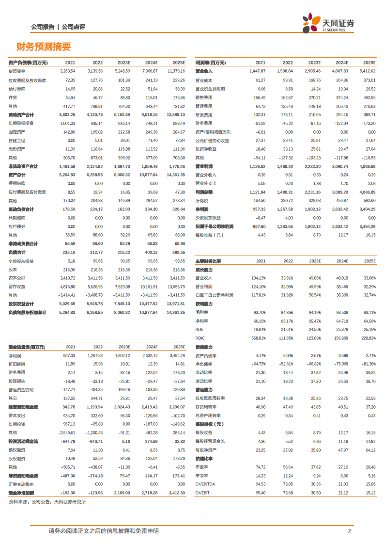 | 指标 (百万元) | 2021 | 2022 | 2023E | 2024E | 2025E |