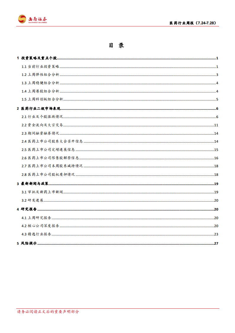 报告提示了医药行业面临的主要风险:医药行业政策风险超预期、研发进展不及预期风险以及业绩不及预期风险。
