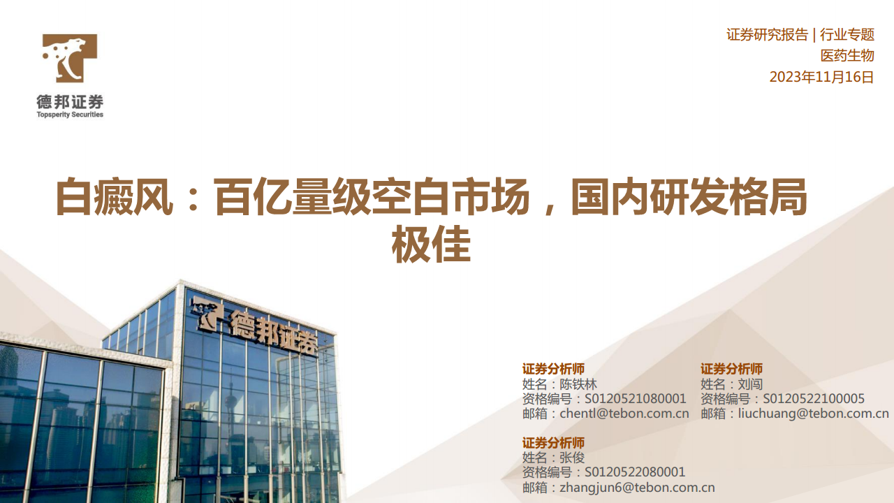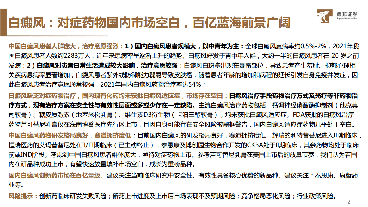 医药生物2023年11月16日:白癜风:百亿量级空白市场,国内研发格局